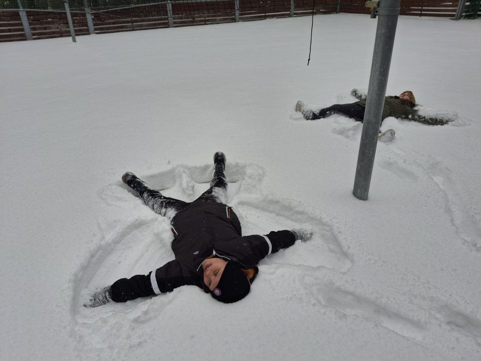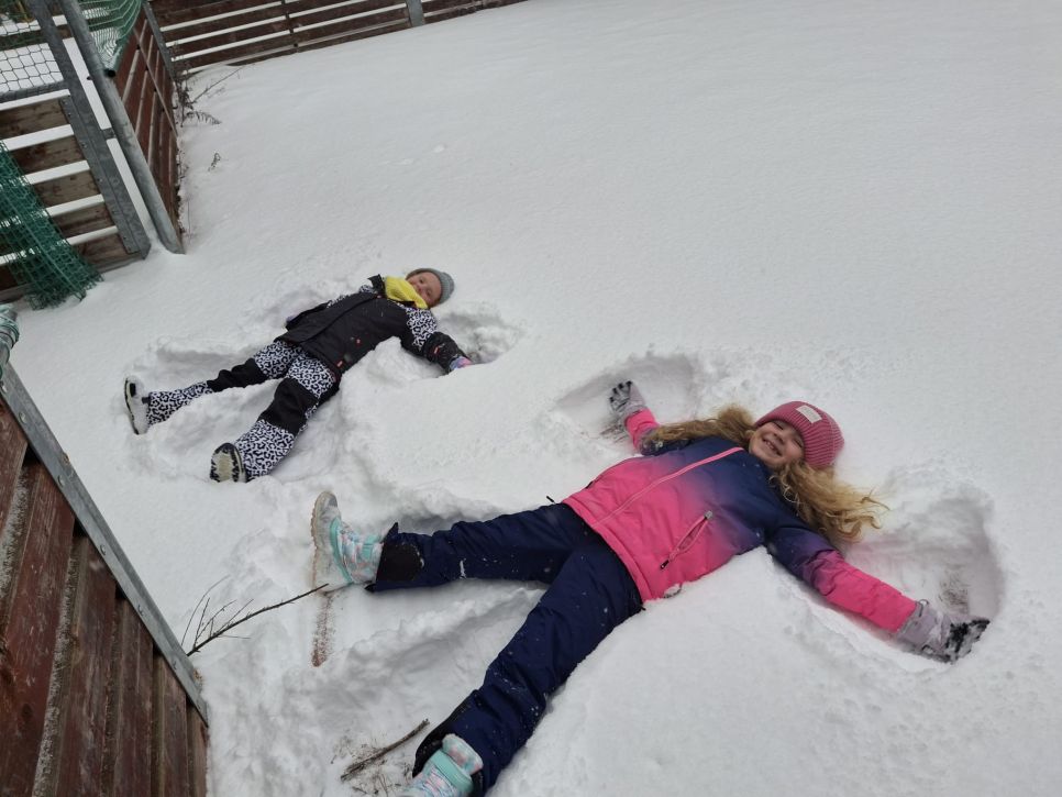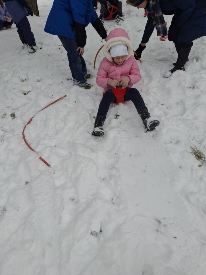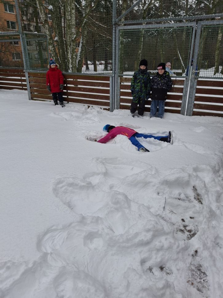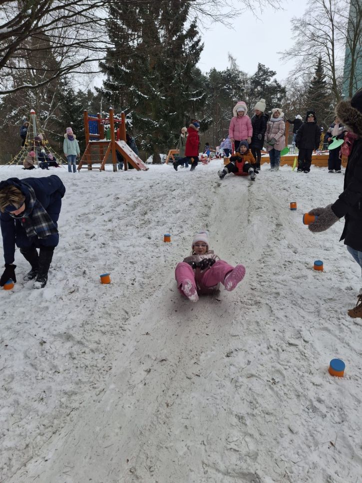 Letos se nám konečně povedlo počasí na naší zimní olympiádu, abychom si ji mohli udělat venku. Na zasněžené zahradě si děti udělaly ve sněhu anděla, sjížděly kopec na lopatách,
