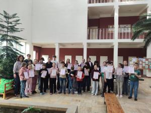 Během slavnostního zahájení letošního Vánočního jarmarku byli oceněni žáci školy, kteří nebyli lhostejní v naléhavé situaci. Starší paní se nedaleko školy udělalo špatně při venčení psa.