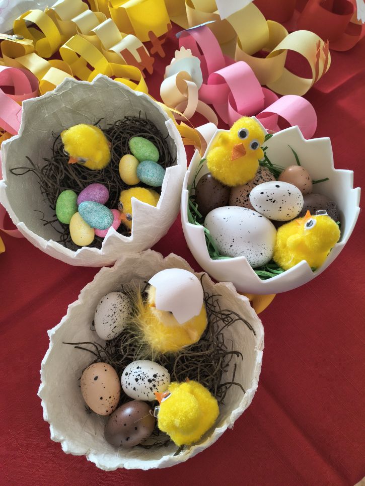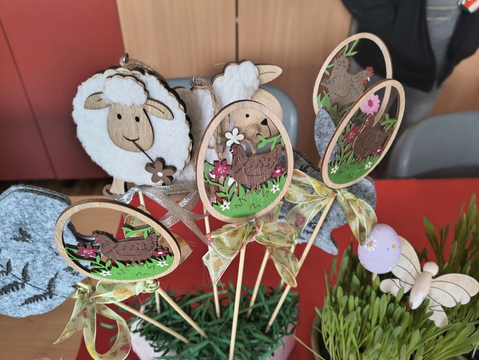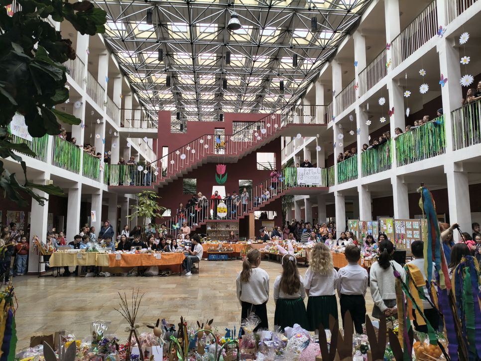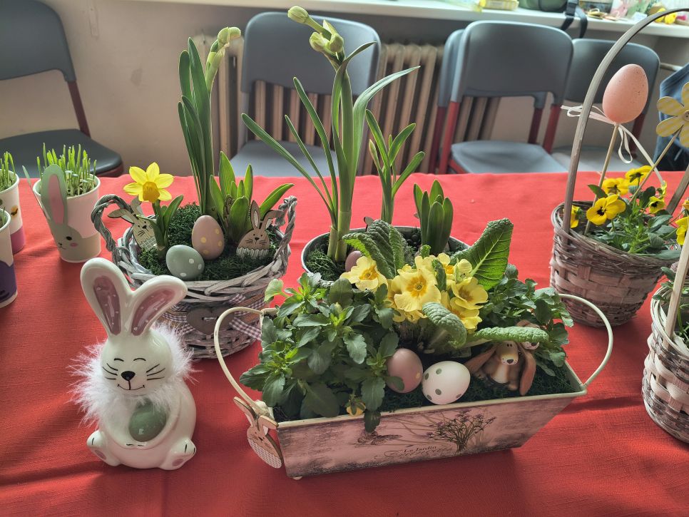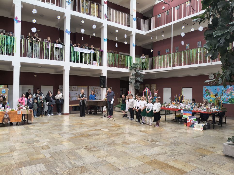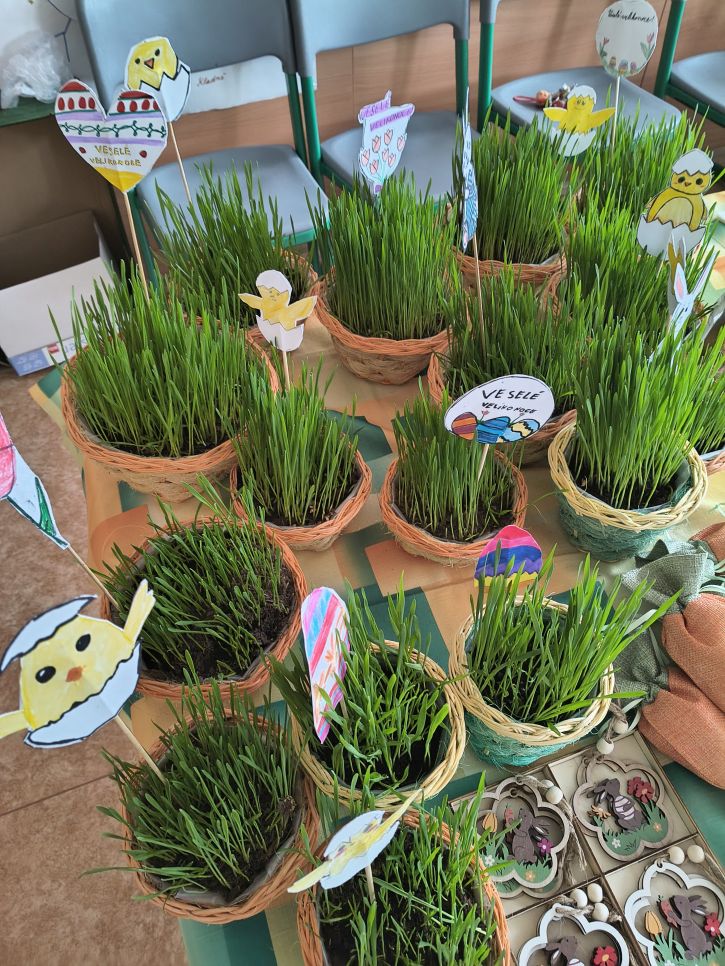 Rodiče a přátelé školy si mohli přijít nakoupit dobroty sladké i slané a mohli si vybírat mezi nápaditými velikonočními dekoracemi od zajíčků, různých napichováků až po oseníčka. A kdo nechtěl nakupovat, mohl si v klidu posedět v kavárně u jezírka.