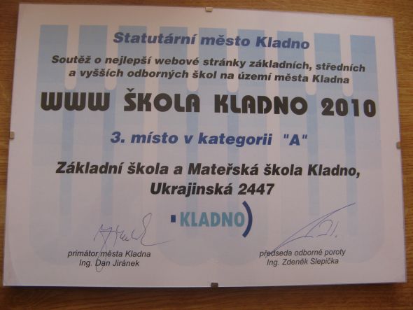 V soutěži se naše škola umístila na 3. místě a vyhrála interaktivní tabuli v hodnotě 50 000,- Kč. Soutěže se zúčastnilo 24 škol.